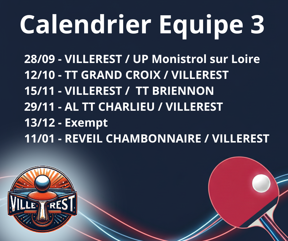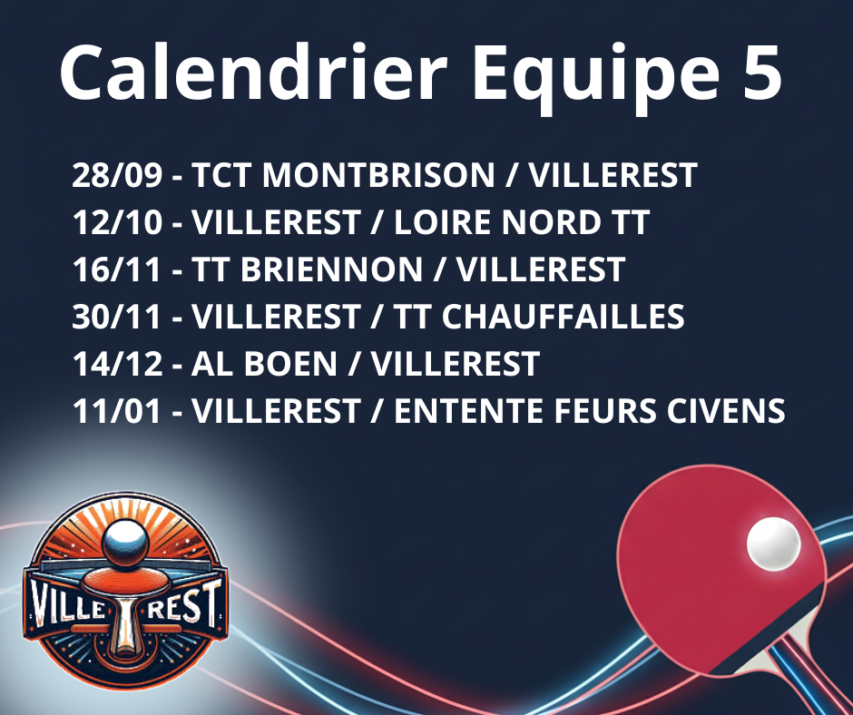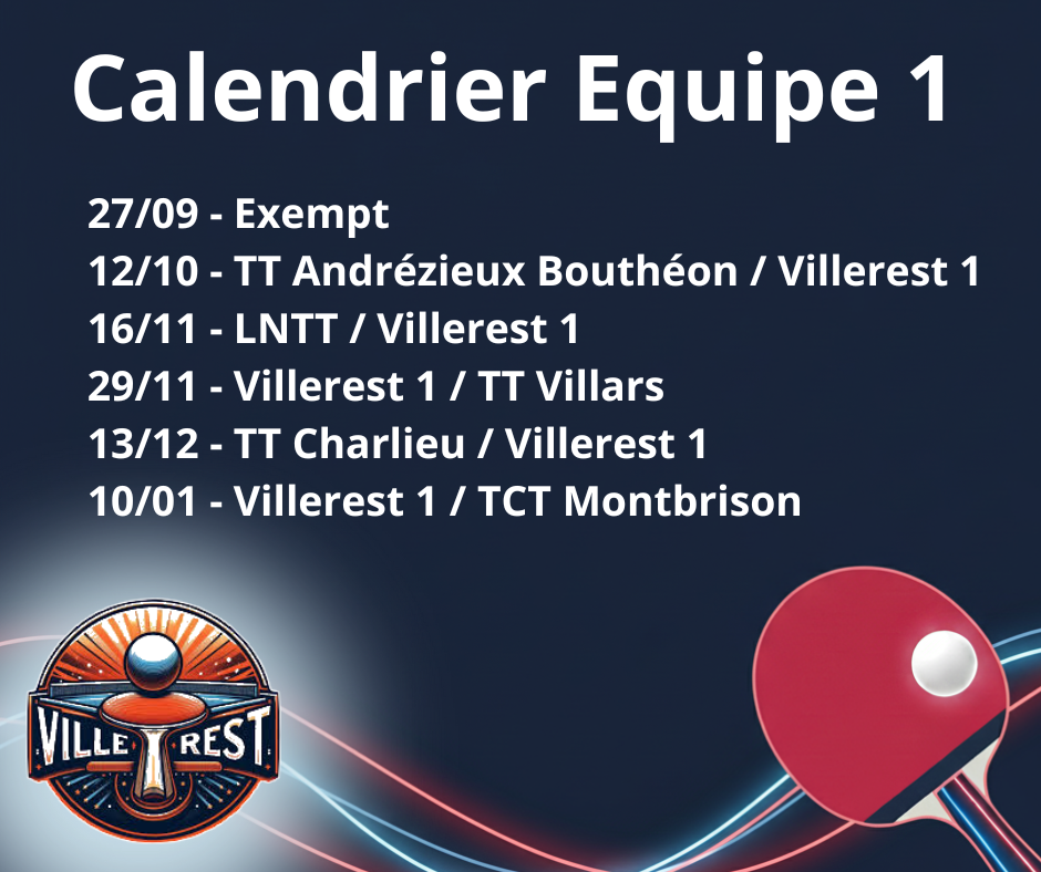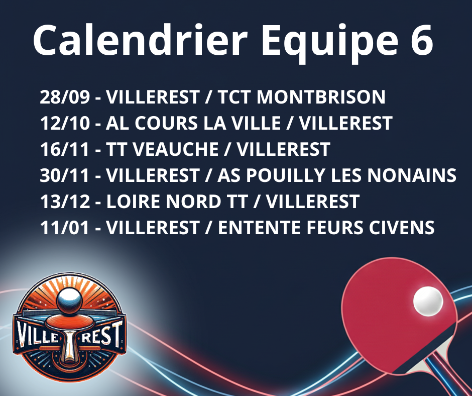 Voici le calendrier 2025-2026 de la phase 1 de nos 6 équipes :